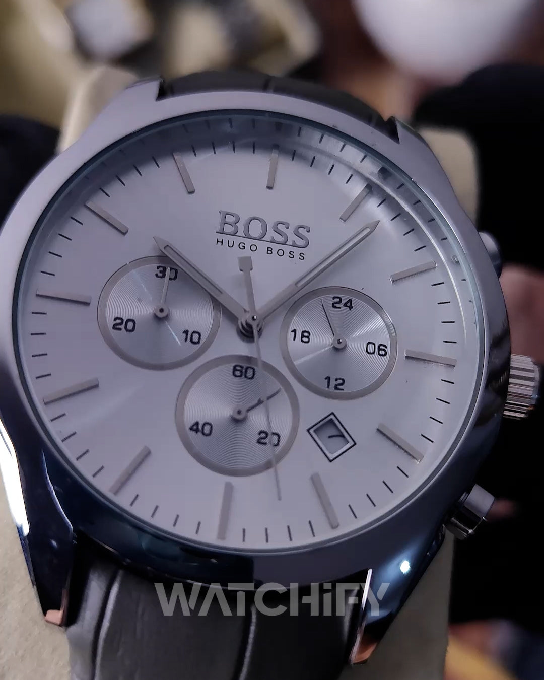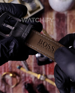 Sublimez votre style avec cette magnifique montre chronographe Hugo Boss au cadran argenté sophistiqué et ses trois sous-cadrans de précision.