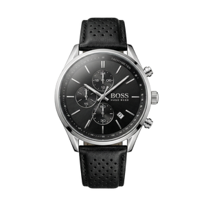 Élégante et intemporelle, cette Hugo Boss chronographe associe un boîtier argenté raffiné à un cadran noir sophistiqué et un bracelet en cuir perforé. Une montre au design chic et sportif, idéale pour sublimer vos tenues du quotidien comme vos occasions spéciales. ⌚✨
